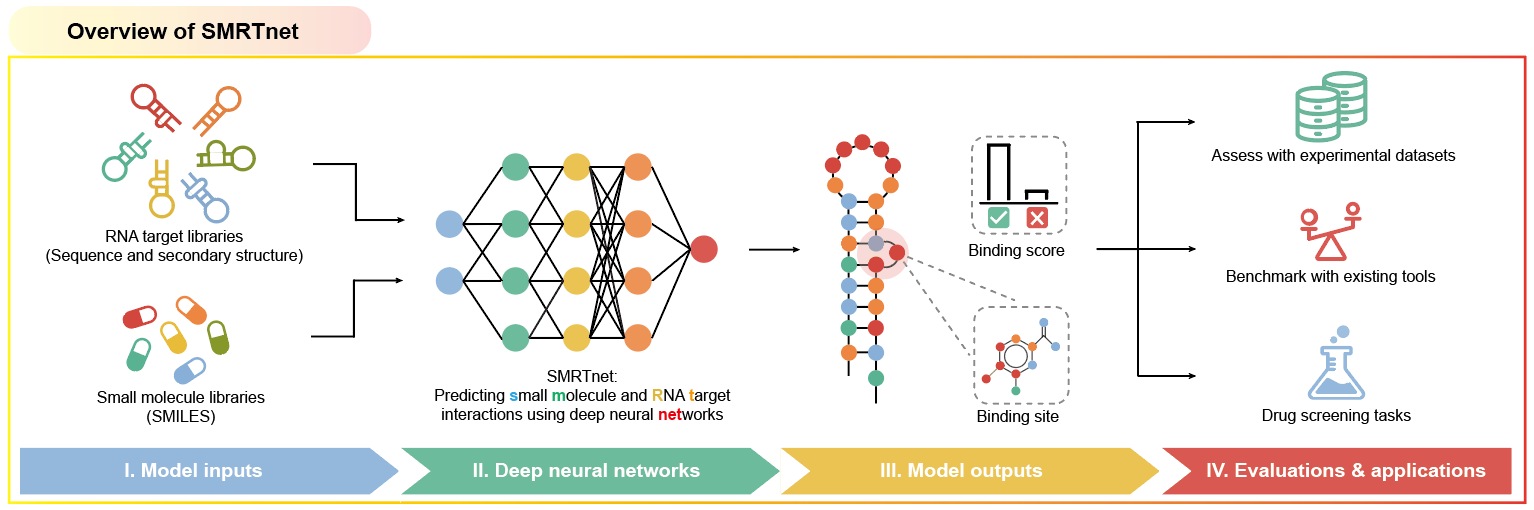In summary, the study reports the development of the artificial intelligence method SMRTnet and systematically demonstrates—through large-scale virtual screening combined with in vitro validation—its superior performance in predicting small molecule–RNA interactions and identifying binding sites. This approach substantially enhances the efficiency of early-stage drug screening and establishes a solid foundation for subsequent lead optimization and in vivo evaluation. More broadly, the work provides an efficient and reusable AI framework for the early discovery of RNA-targeted small molecule drugs, highlighting the potential of AI to accelerate the initial stages of RNA-targeted drug development.
