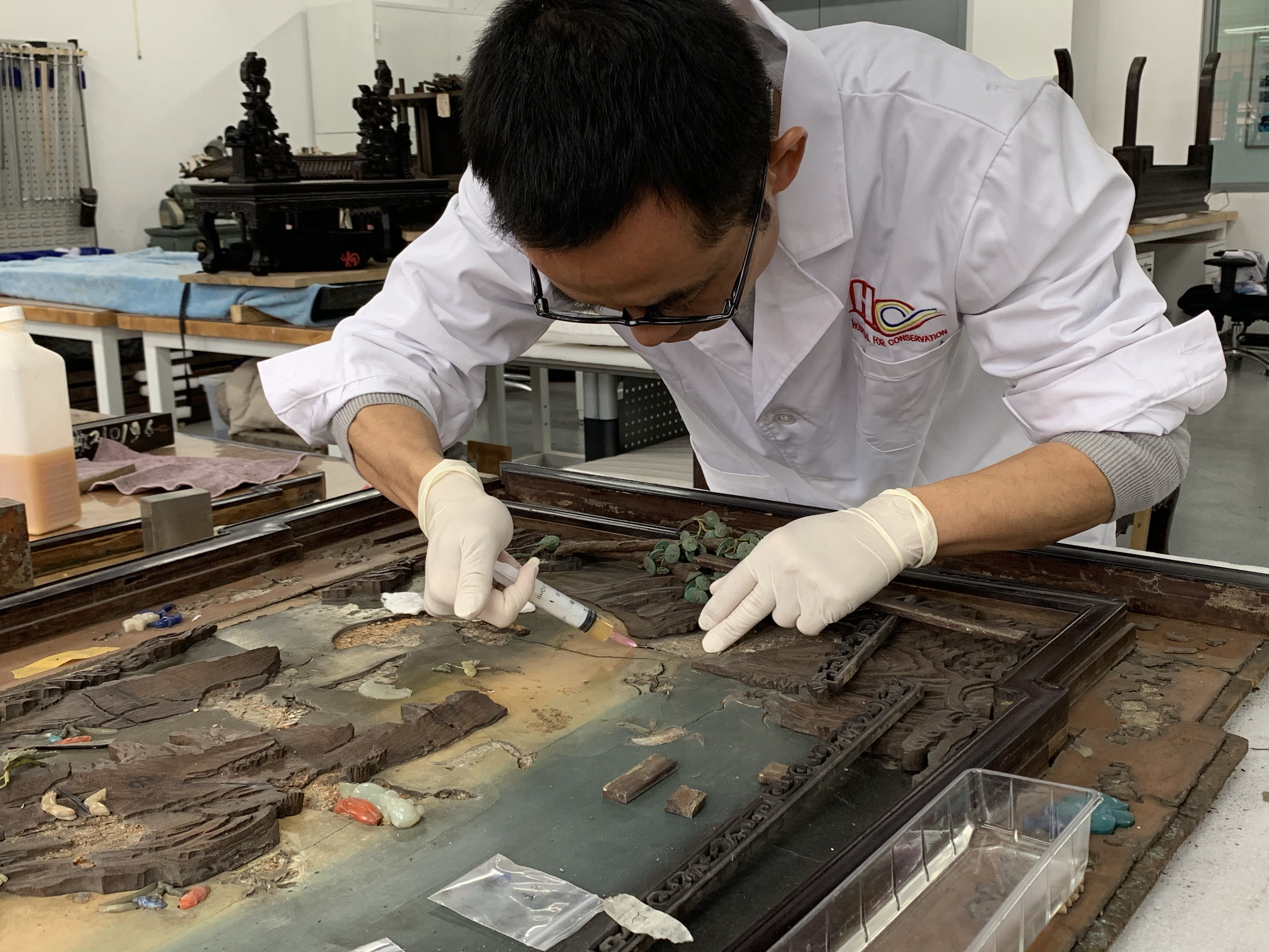 In this quiet palace courtyard, Min deals with cultural artifacts with patience. As different lacquer items require a wide variety of restoration processes, Min has faced different crafting challenges. “We have to learn and do everything step by step. The process is pretty long, but I think it's fun and not boring.”