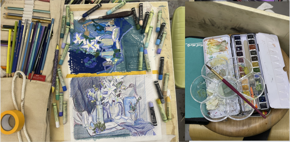 A variety of painting materials are blended to teach the basic principles of color composition. It represents a blend of traditional artistry with contemporary practice while adhering to a rigorously developed curriculum designed to equip students with a deep, practical understanding of color’s role in artistic expression.