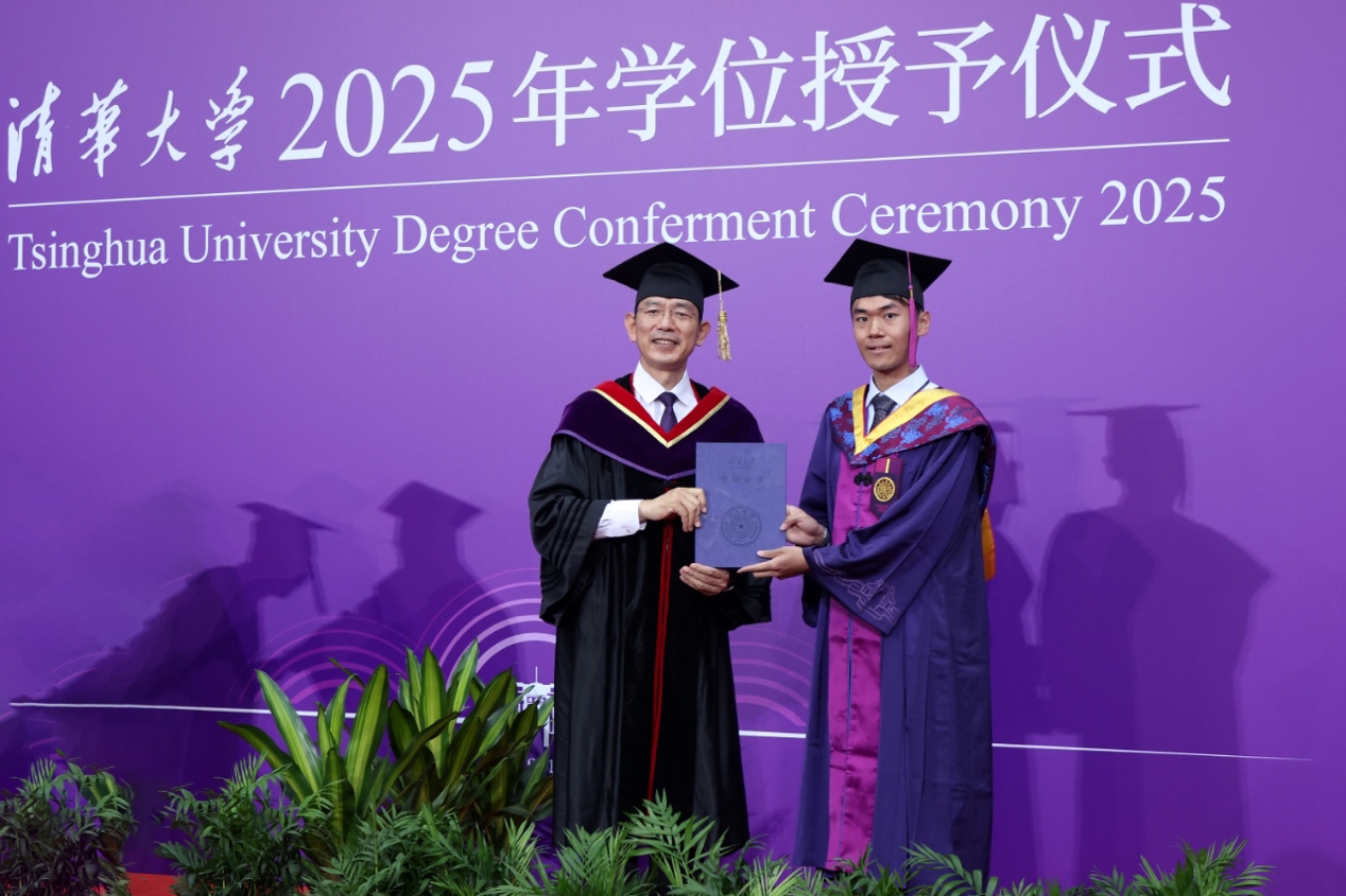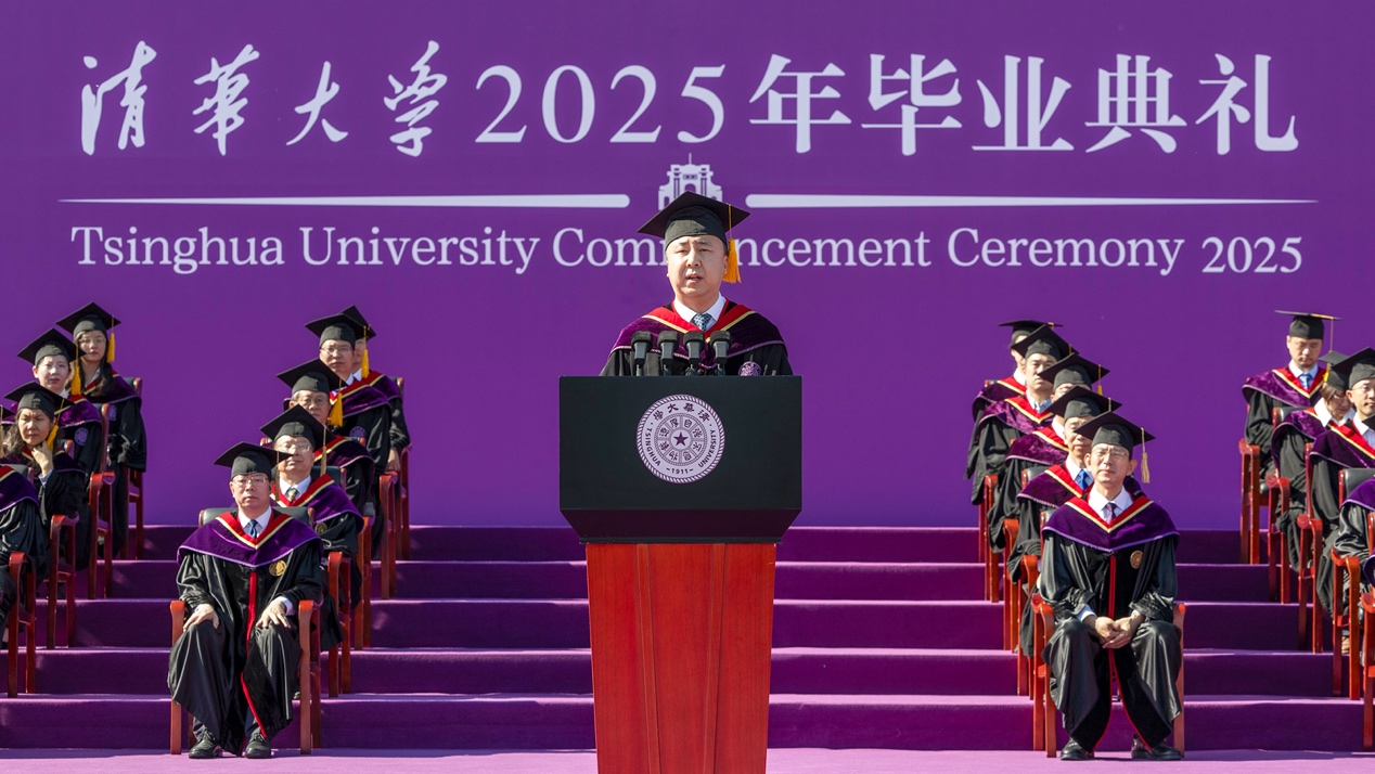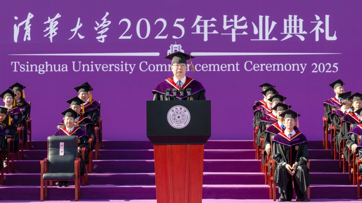 Secretary of the CPC Tsinghua University Committee, Qiu Yong, announced the commendation of outstanding classes and excellent graduates, and encouraged the graduates to cultivate a character of courage and resilience, foster an optimistic and open-minded outlook, develop a pragmatic and enterprising spirit, and strive with tenacity and determination. He called on them to live up to their mission and continue reaching new heights in life on the journey toward building a strong nation and realizing national rejuvenation.