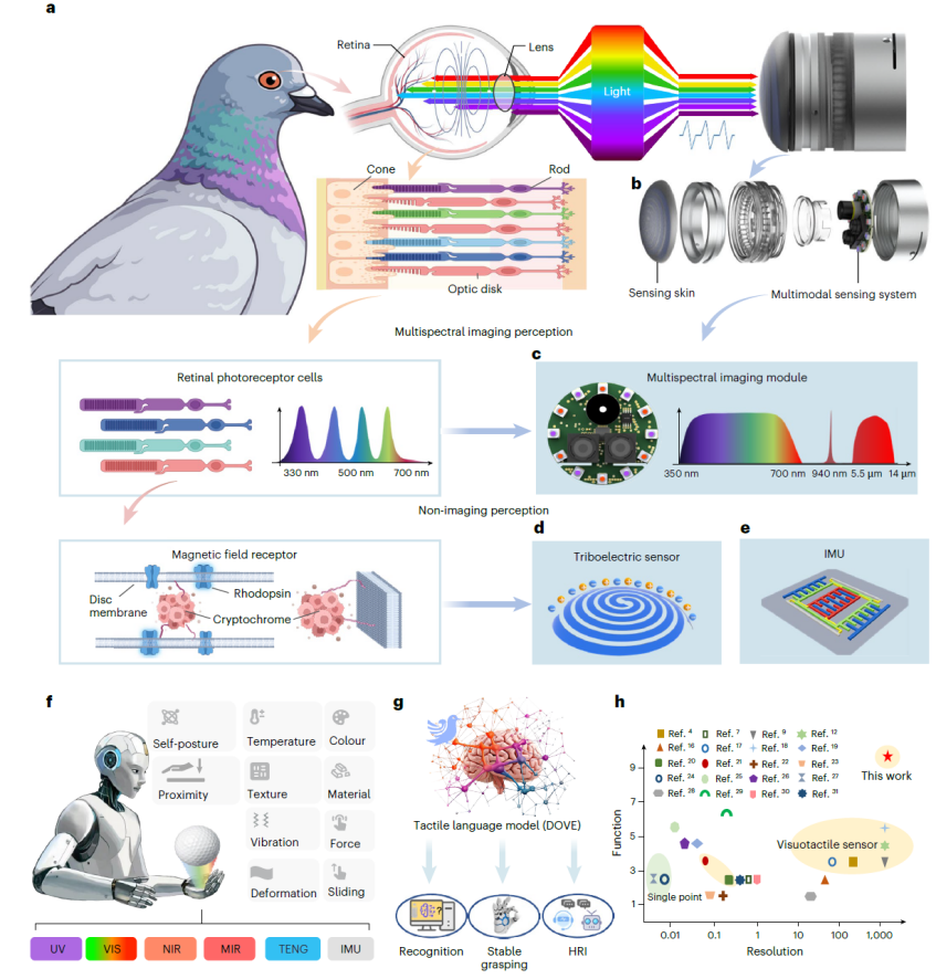 近日,清华大学深圳国际研究生院丁文伯副教授团队联合国内外多家单位,成功研发出一种受鸽眼启发的多模态高分辨率触觉传感器(SuperTac),取得了机器人触觉感知能力的重要进展(图2)。