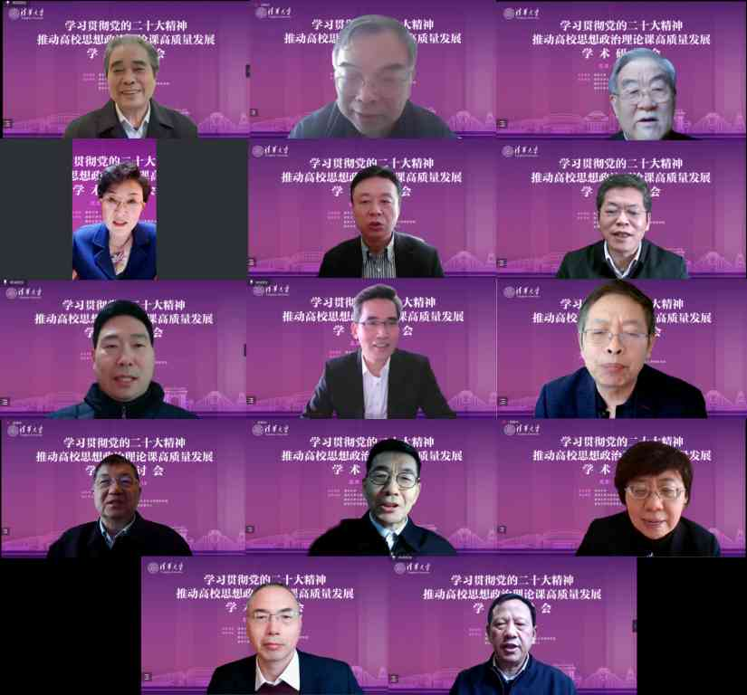 清华新闻网12月22日电 12月18日,由清华大学主办,清华大学马克思主义学院、清华大学习近平新时代中国特色社会主义思想研究院、清华大学高校思想政治工作创新发展中心共同承办的“学习贯彻党的二十大精神,推动高校思想政治理论课高质量发展”学术研讨会以线上方式成功召开。中央宣传部理论局副局长陈启清,教育部社会科学司副司长宋凌云,北京市委教育工委副书记沈千帆,清华大学党委副书记、马克思主义学院党委书记向波涛出席会议并在开幕式上致辞。开幕式由清华大学习近平新时代中国特色社会主义思想研究院院长艾四林主持。