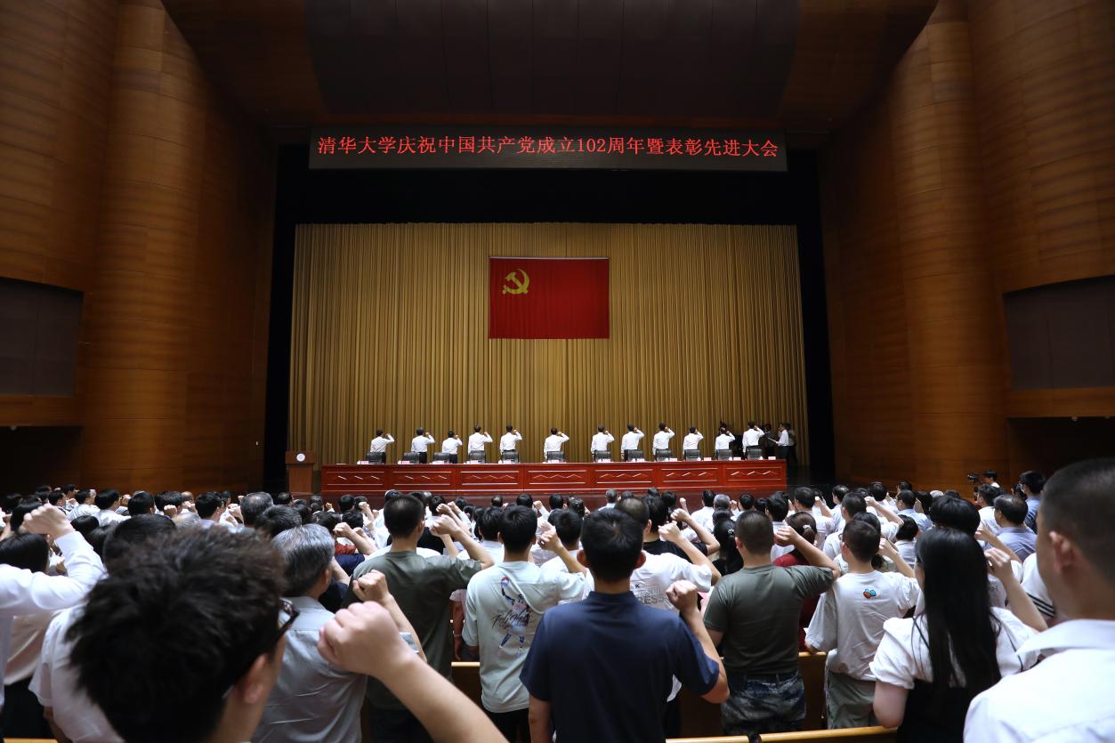 “我志愿加入中国共产党,拥护党的纲领,遵守党的章程,履行党员义务……”在中国工程院院士、工程物理系教授范维澄的领誓下,过去一年入党的新党员面向鲜艳的党旗庄严宣誓,与会党员们也一同重温了入党誓词。