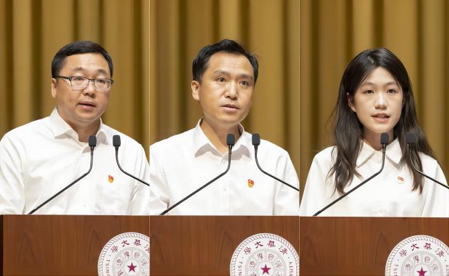 一枚枚党员徽章在胸前闪闪发亮,回首过去,展望未来,与会师生纷纷表示,前进的动力更加强大,奋斗的精神更加昂扬,必胜的信念更加坚定。