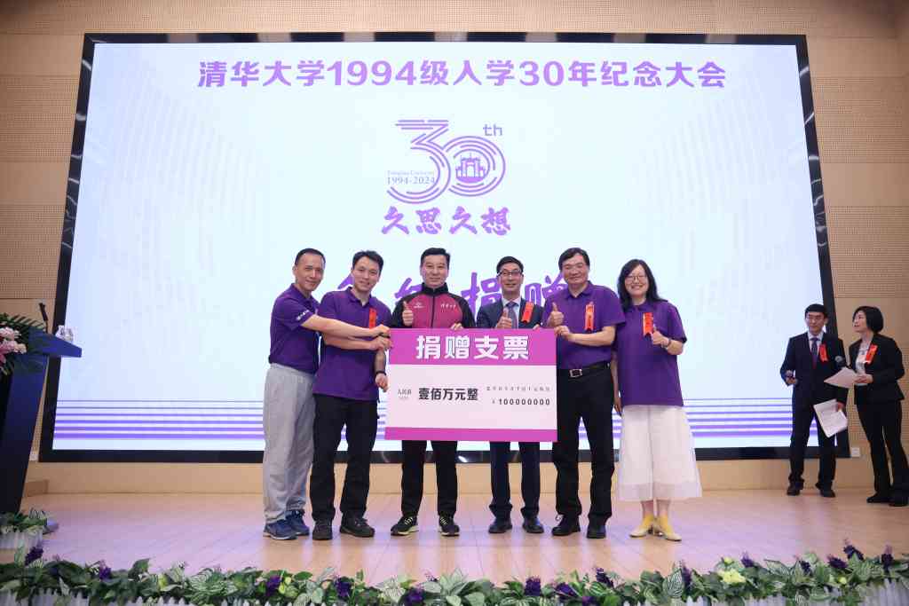 大会还举行了1994级校友入学30周年捐赠仪式。张金生、雷江、徐旸、南彬等4位校友代表年级向母校进行捐赠,清华大学体育部党委书记马新东,清华校友总会秘书长、校友工作办公室主任唐杰代表学校接受捐赠。此次捐赠款项将用于支持学校北体育馆冰雪馆看台项目。