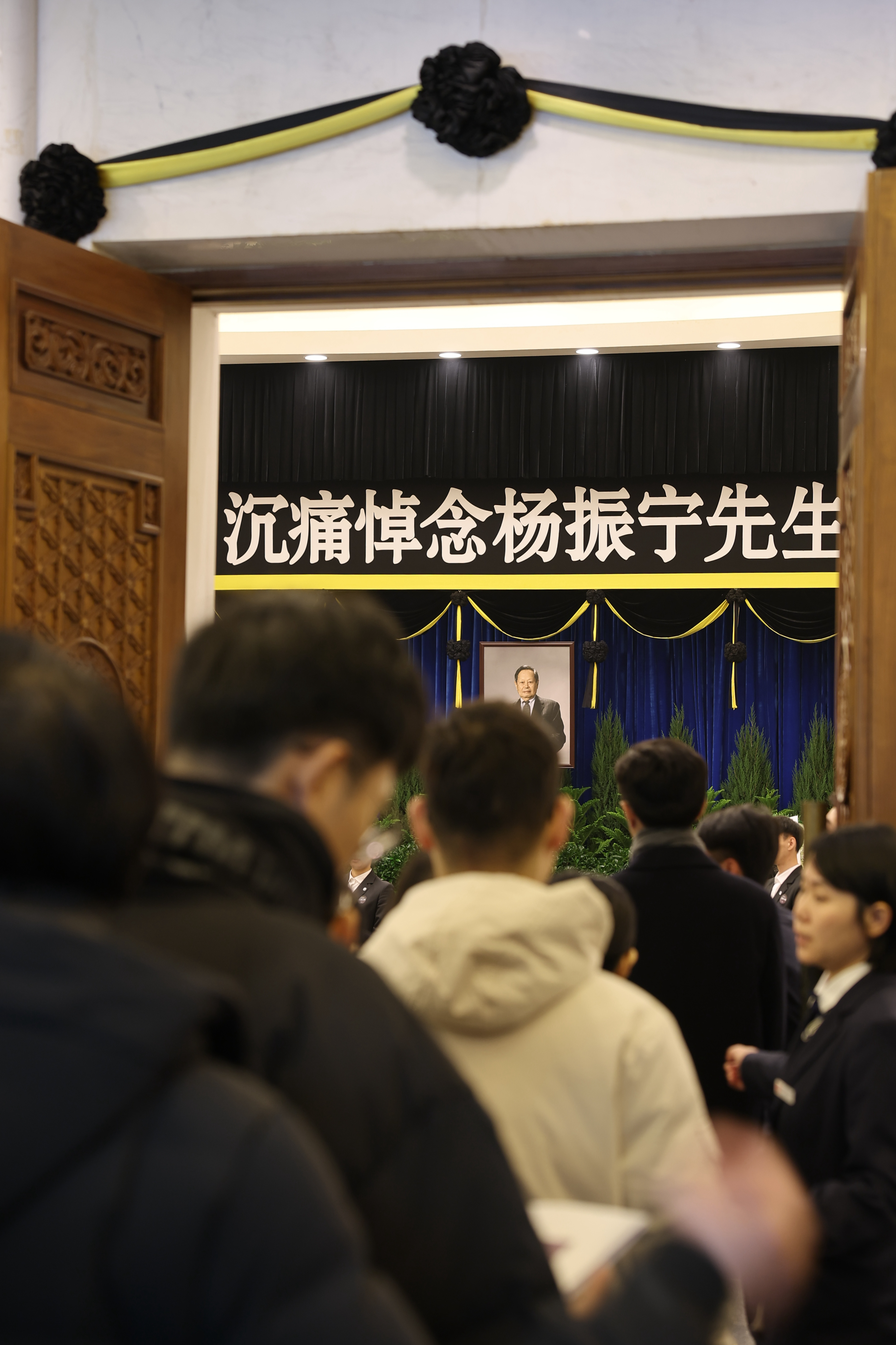 在礼堂外排队等待送别杨振宁先生