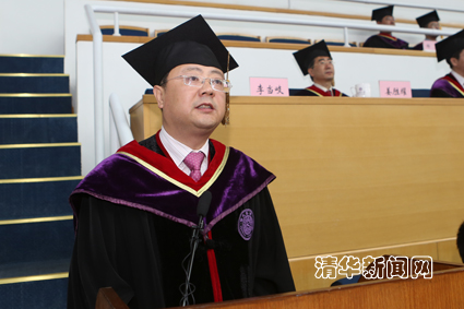 今天,也是一个感恩和庆贺的日子。我要感谢所有家长和教职员工,你们的默默付出,使同学们的青春大戏顺利杀青,在更大的舞台上开始更精彩的续集。我衷心祝贺各位受表彰的同学,你们用努力奋斗成为大家的榜样,你们是清华今天的骄傲!我更想到那些曾在学业、爱情和成长中挫败过、彷徨过的同学,你们克服了困难,经历了磨练,战胜了自我,取得了无法用分数记录的进步,你们的毕业更值得祝贺,我为你们感到自豪!