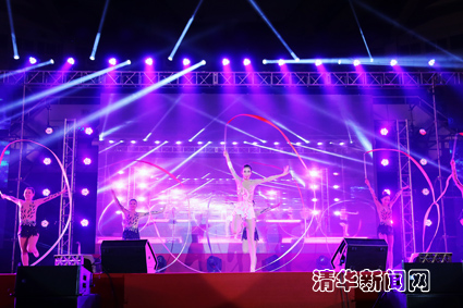 晚会随着清华大学腰鼓队热烈欢腾的舞步与鼓点声拉开帷幕。之后,校友舞蹈队登台表演了《扎西德勒》,其中有相当部分是五、六十年代的老校友,年龄最大的达76岁,但他们丝毫不输年轻人的舞姿赢得了全场师生的喝彩。水工92班同学的小品《家访》则有着浓浓的东北风味,演员们精彩的表演加上充满喜剧色彩的台词,令全场观众捧腹。