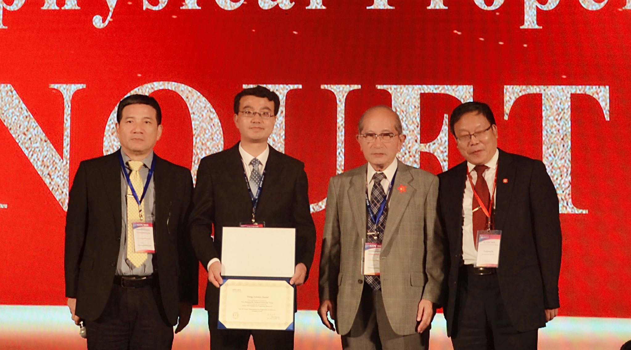 马维刚(左二)在第12届亚洲热物性大会颁奖典礼上接受颁奖