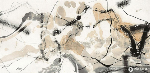 无论是陶瓷,还是水墨,还是抽象绘画,在历史的宏阔背景下都各自被拘役着,很多艺术家都屈从于这些枷锁,真正的高手却能戴着脚镣跳舞。这些高手充分地和材料对话,从它们的灵魂中汲取温暖,以无尚的“法”成就了“术”之间的转化。白明正是这样,他很好地将传统属性融于现代形式,将情感凝在笔间,于是笔下隐隐的山脉流水、茶渍墨晕就成了刹那间的绽放,成了充满美感的思考。他的现代茶墨、现代陶瓷,之所以能代表东方,也许正是因为他在自由背后的这份情感敬畏,在形式之上的所思所想。