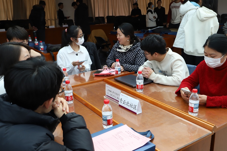 在项目沙龙交流与匹配环节,各高校志愿者代表与社区社工代表围绕社区常态化工作中的难点、痛点与志愿服务资源的结合点,进行分组研讨。