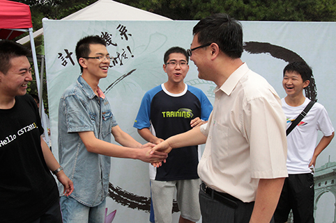 校长陈吉宁与新生握手。记者 郭海军