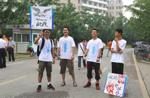 前来迎接新生的“老生”们。记者 郭海军