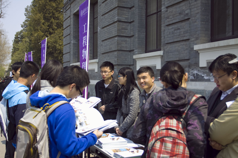 清华新闻网4月22日电(新闻中心学生摄影记者 王皓冉 张伟杰)4月20日,2013年清华大学校园开放日暨招生信息交流会在大礼堂和草坪周围拉开帷幕。开放日由主题报告及专场信息交流会,北京招生组、全校各院系以及兄弟高校的现场面对面咨询,场馆及实验室参观,“我在清华等你来”招生咨询微博互动平台在线答疑等活动组成,吸引了众多考生与家长前来参加。