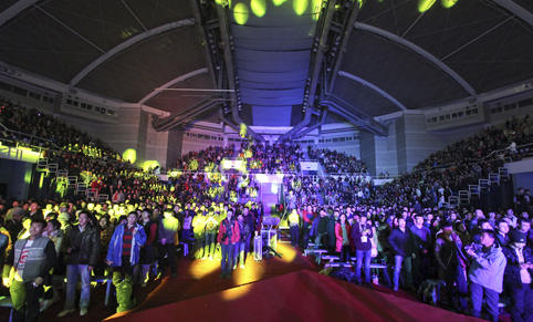 清华新闻网1月3日电(摄影 智 斐 王皓冉 李钧翔 邢智鹏)2012年12月31日晚,“一年恋一天”清华大学2013年新年联欢晚会在综合体育馆举行,2000余名师生共迎新年。