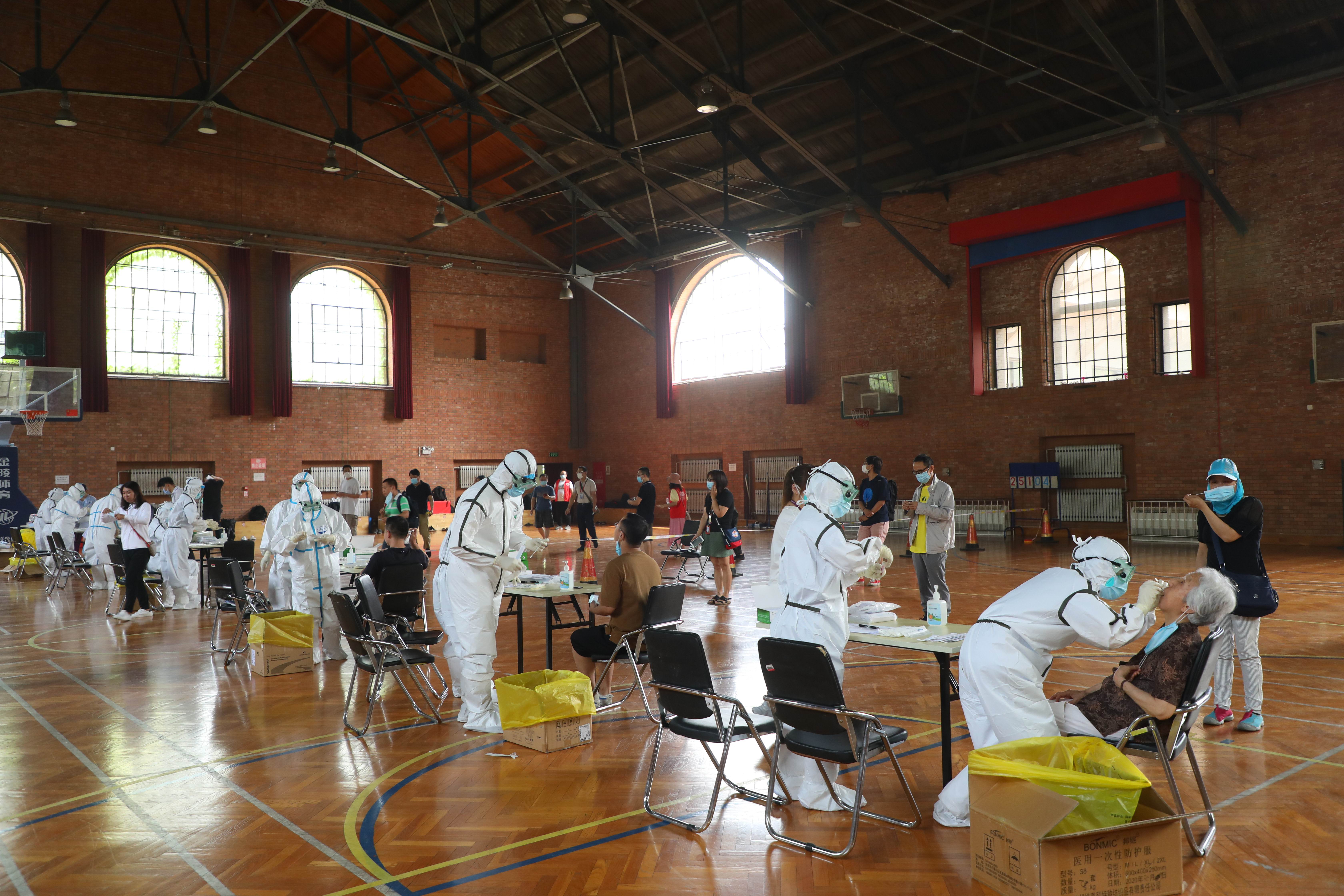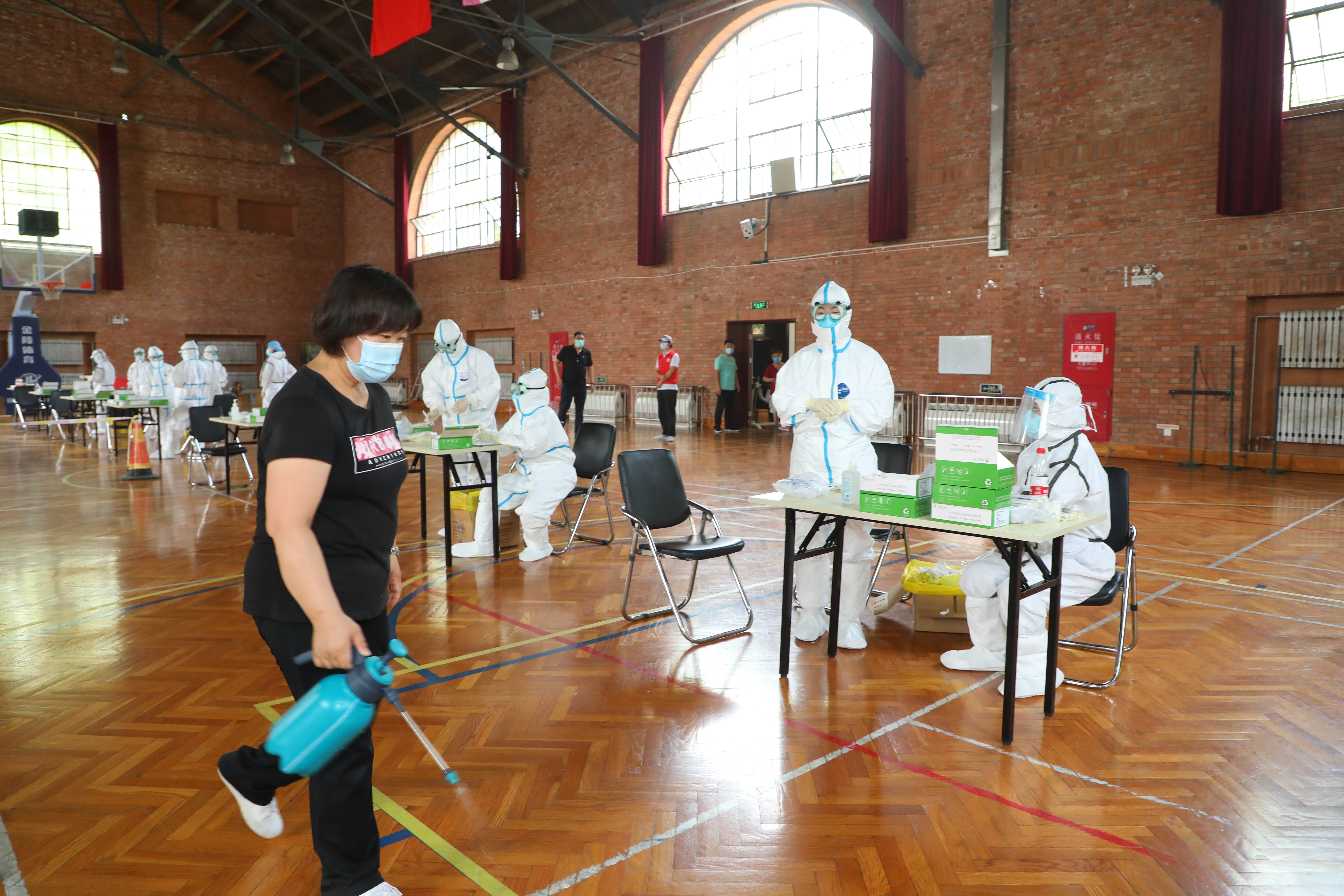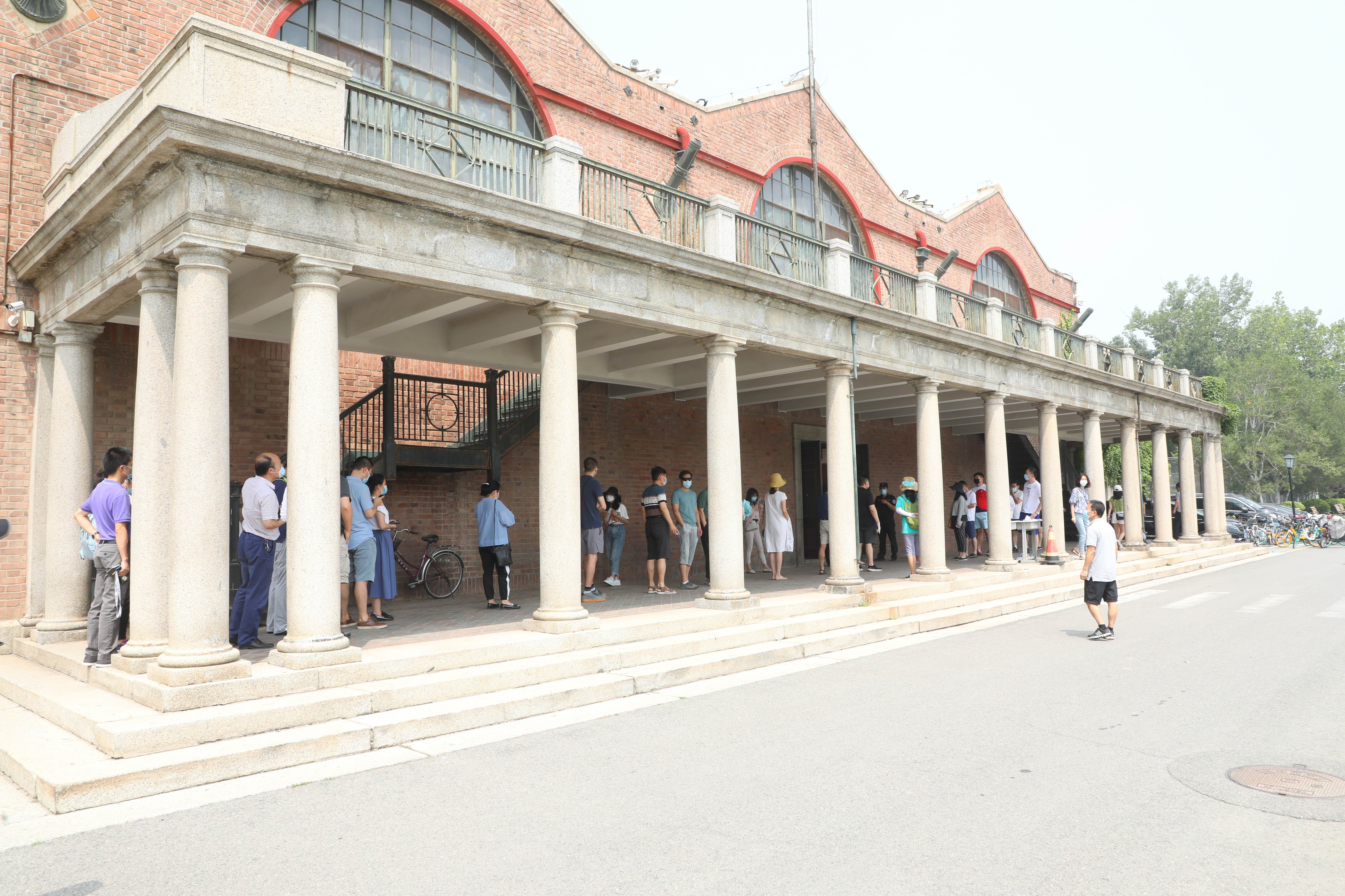 来自清华长庚医院、清华一附院的医护人员“全副武装”,耐心地为大家采样。累计150余位身着红马甲的校机关志愿者也积极参与了相关志愿服务工作。