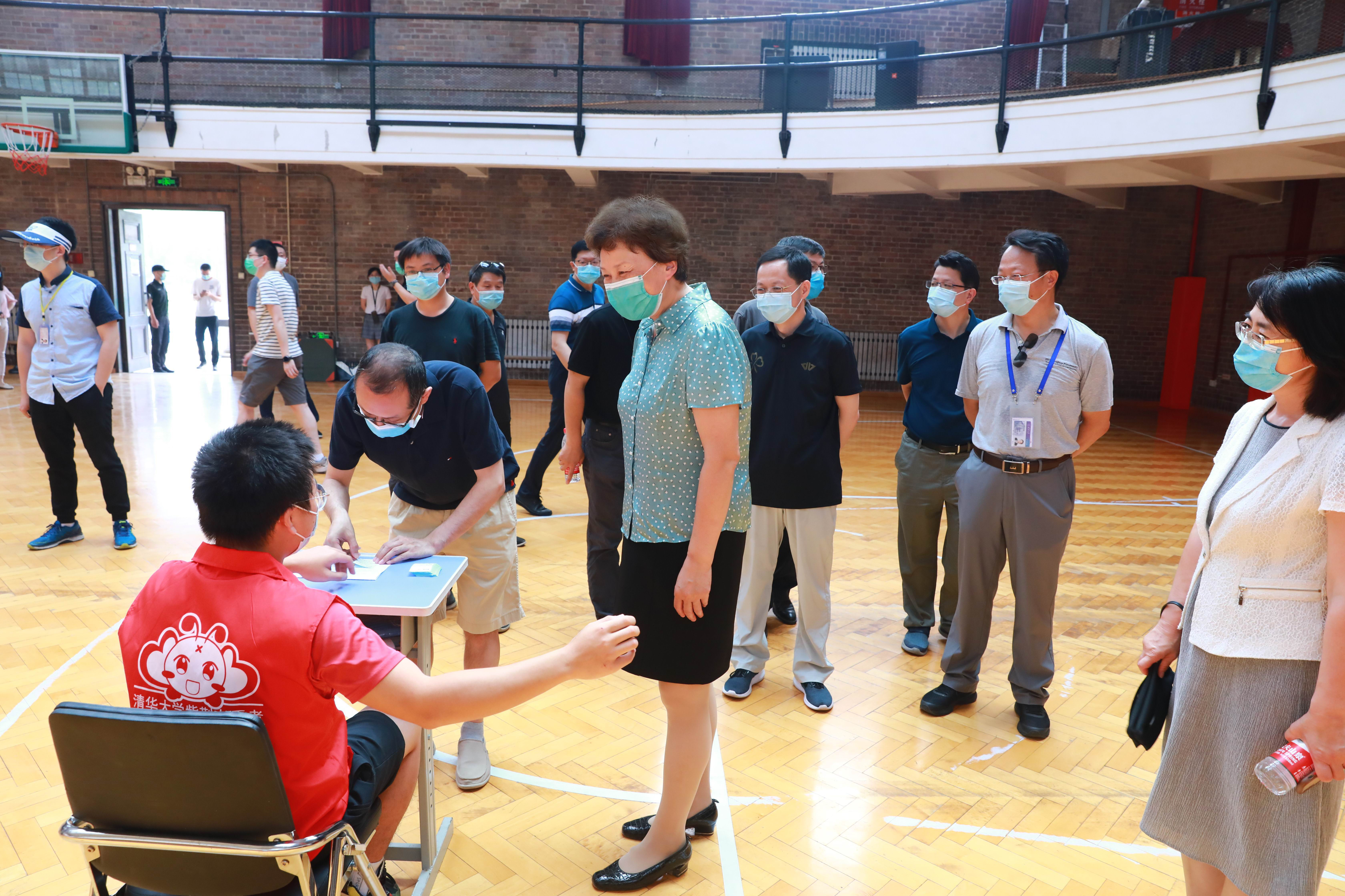 清华新闻网6月27日电 根据新型冠状病毒肺炎疫情防控需要,为进一步做好对在京高校人员等重点人群病毒核酸检测,落实“应检尽检”有关要求,6月27日,清华大学面向全体在京在职教职工以及进入校园人员开展集中核酸检测。当天,清华大学党委书记陈旭,常务副校长王希勤,副校长尤政、郑力等到现场检查集中核酸检测工作并看望参加检测的教职工。
