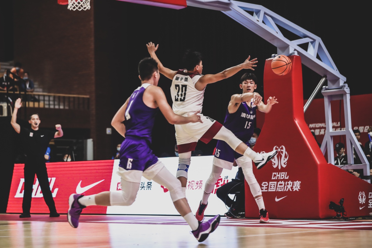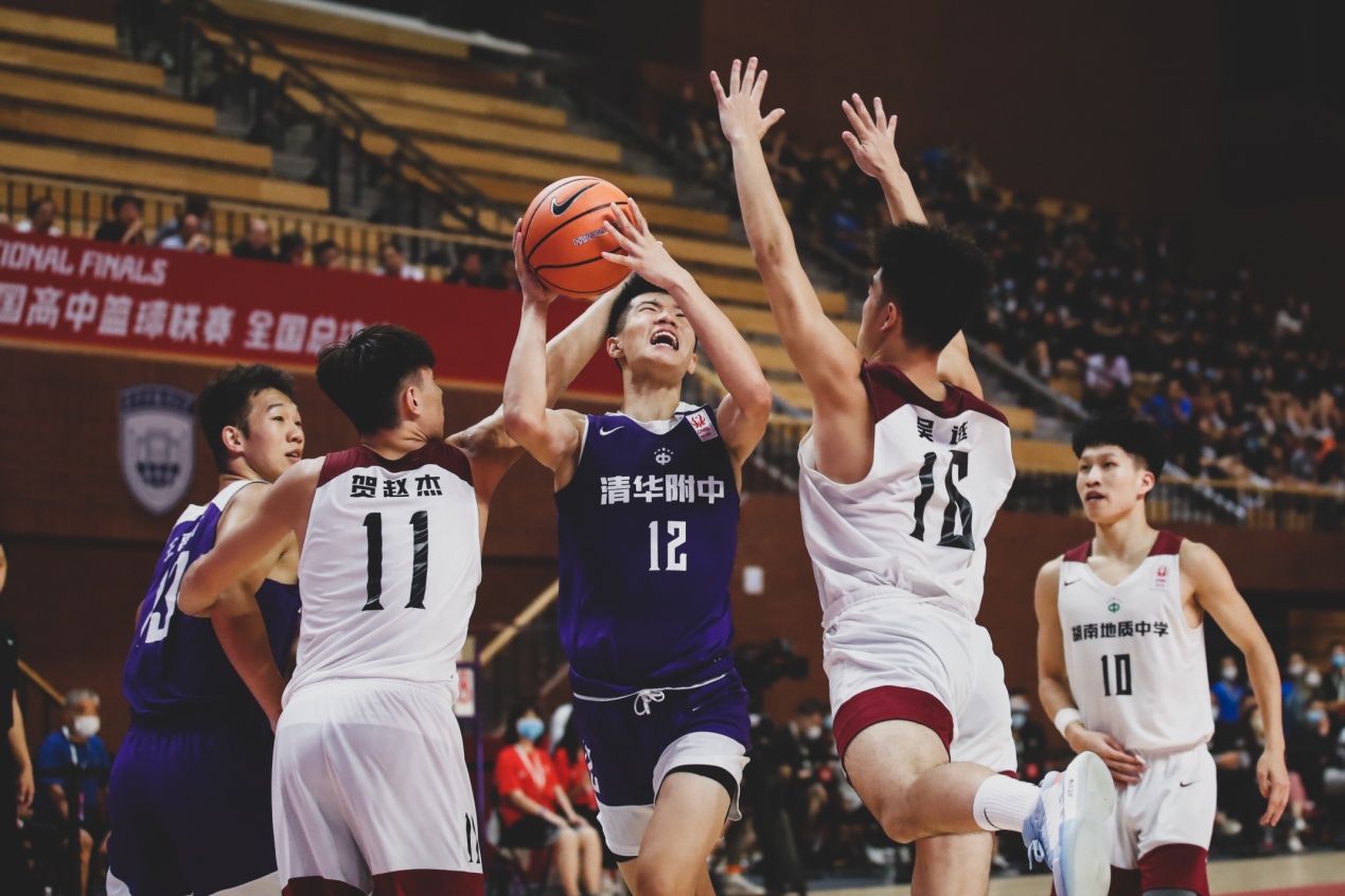 19:00,清华附中高中男篮迎战湖南地质中学。清华附中凭借两罚全进率先打开局面。随后,清华附中内外开花,不断获得罚球机会,第一节比赛结束,清华附中以18:5暂时领先。第二节比赛,双方都开始外围出手得分。湖南地质中学试图追击比分,但清华附中的内线没有给对手起势的机会。第三节比赛,清华附中内线“双塔”杨曦皓、张陈治锋利用身高优势防守,使篮下密不透风。湖南地质中学也不甘示弱,利用精妙的配合打出一记2+1。