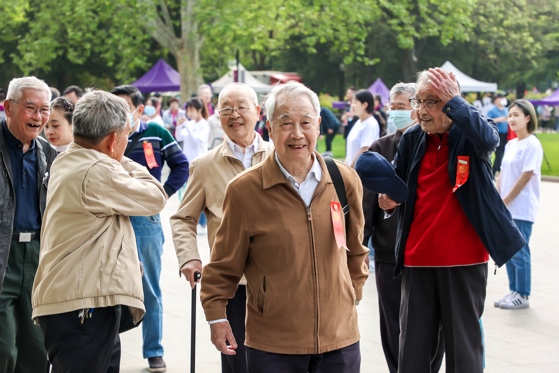 水木清华,春意融融。鲜艳的红胸签随风飘扬,熟悉的笑容恣意绽放。4月24日,在清华大学迎来110周岁生日之际,部分毕业秩年的校友欢聚清华园,忆青春岁月,为母校庆生。