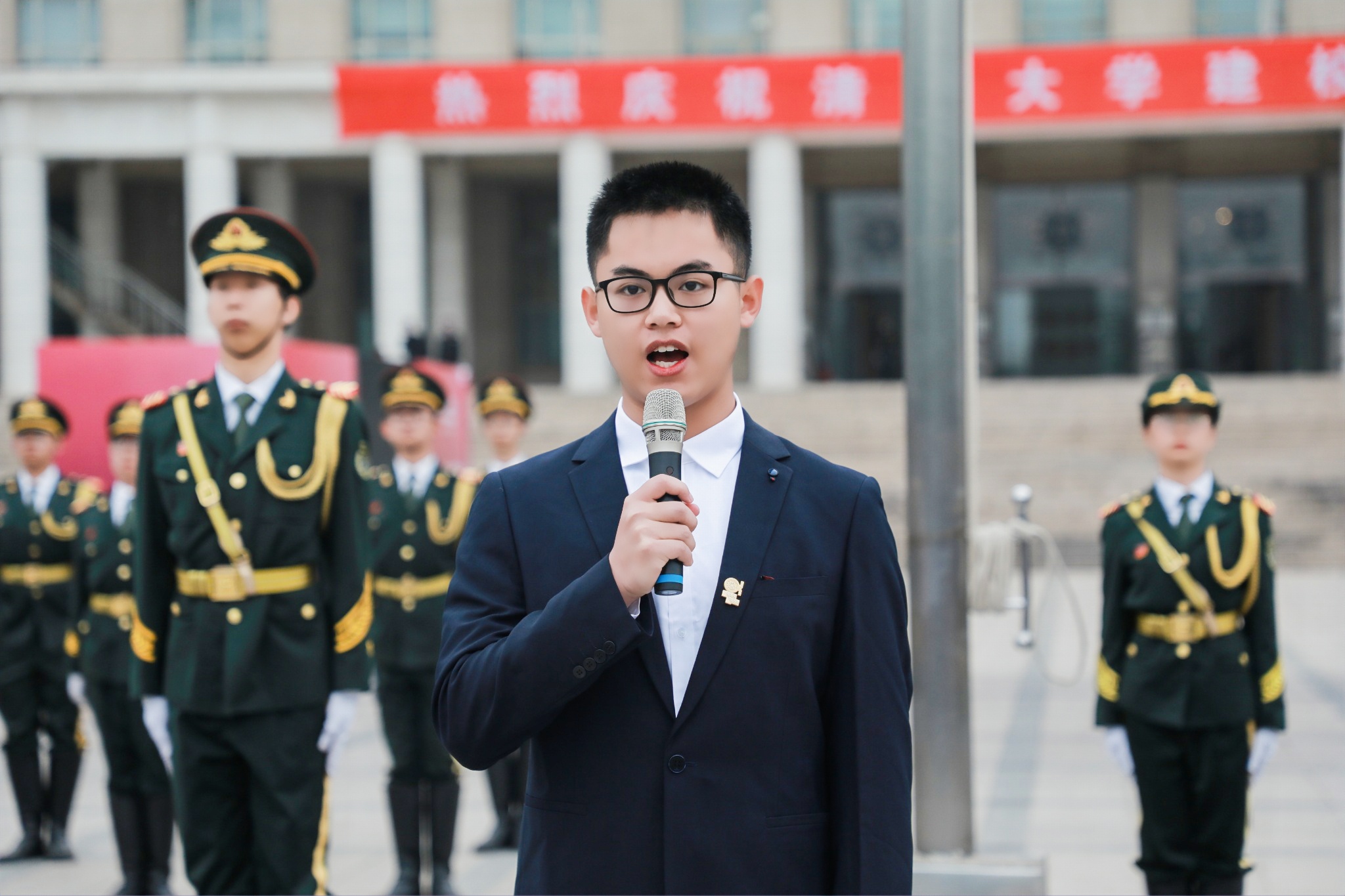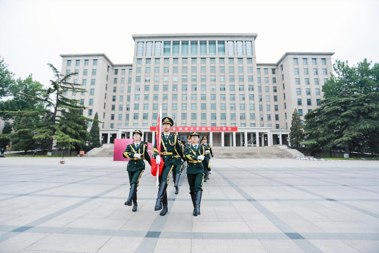 4月25日,随着晨曦徐徐拉开帷幕,清华大学举行升旗仪式,迎接110周年校庆日的第一缕晨光。师生和校友们在主楼广场前整齐列队,目视鲜艳的五星红旗冉冉升起,共同为母校送上诚挚的生日祝福。