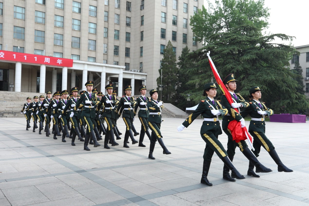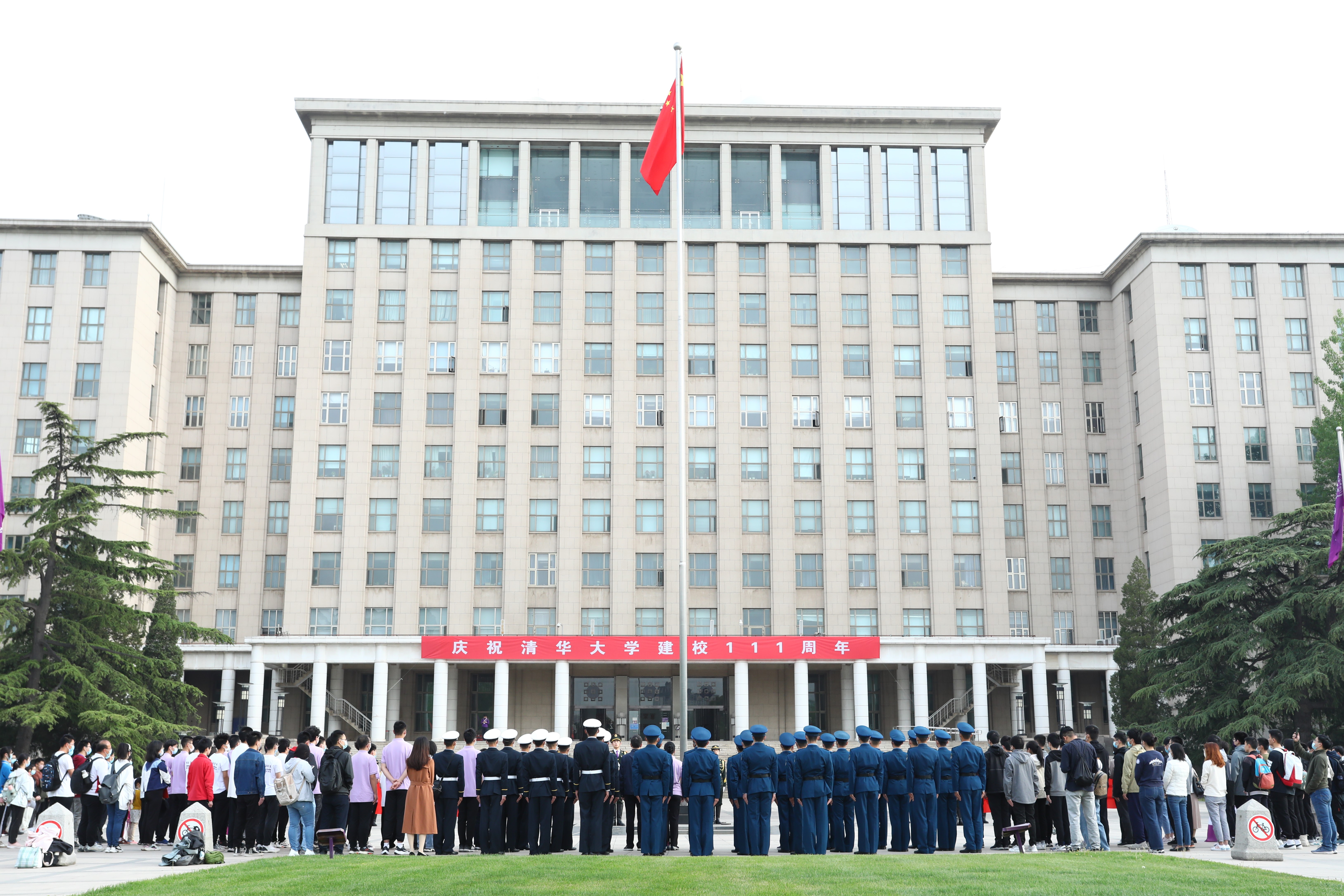 4月24日,天朗气清,清华大学111周年校庆日升国旗仪式在主楼前广场举行。师生校友共同迎接清华大学111周岁生日的第一缕晨光,国歌嘹亮,国旗飘扬。