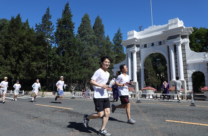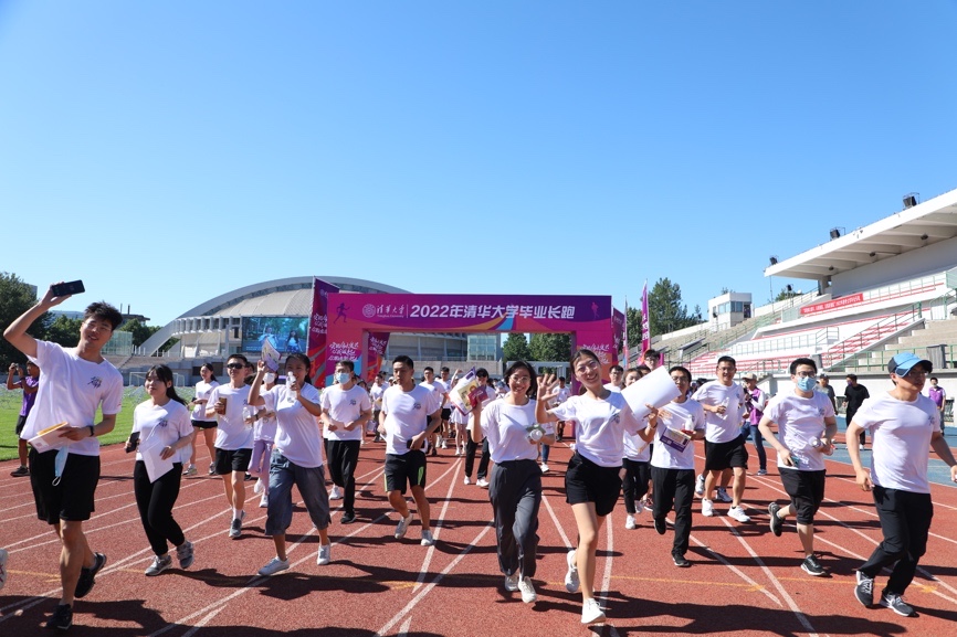 清华新闻网7月1日电 6月23日上午,“实现伟大复兴,从我做起,从现在做起”2022年清华大学毕业长跑顺利举行。本次活动以“实现伟大复兴,从我做起,从现在做起”为主题,旨在激励毕业生继续践行清华精神,毕业后到党和人民需要的地方发光发热。在毕业季,累计900余名本科生、研究生毕业生身着主题纪念衫,分为6个批次陆续相聚东大操场并起跑出发,通过跑步运动的方式再览校园风光,回首青春年华,矢志在青春的赛道上奋力奔跑,争取跑出当代青年的最好成绩。