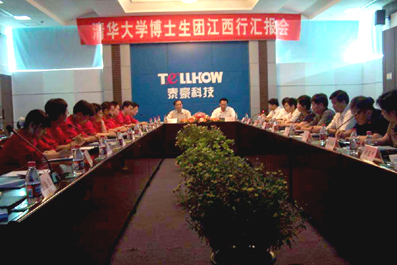 8月16日下午,在南昌市高新区的泰豪科技大厦,江西省委副书记、常务副省长吴新雄、清华大学党委副书记杨振斌等领导听取了清华大学博士生报告团江西行的汇报。汇报会由江西省人事厅厅长揭赣元同志主持,省人事厅张菊萍副厅长、宜春市委宋晨光书记、新余市有关领导、清华大学党委研究生工作部部长唐杰老师、清华泰豪科技股份有限公司黄代放总裁等出席了汇报会。