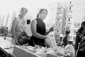 教师节来临之际,容纳一千余户的清华大学教师住宅小区“荷清苑”交付使用。九月九日下午,教师肖立娣(右)、孙晓霞在新宅门前领到了房门钥匙。