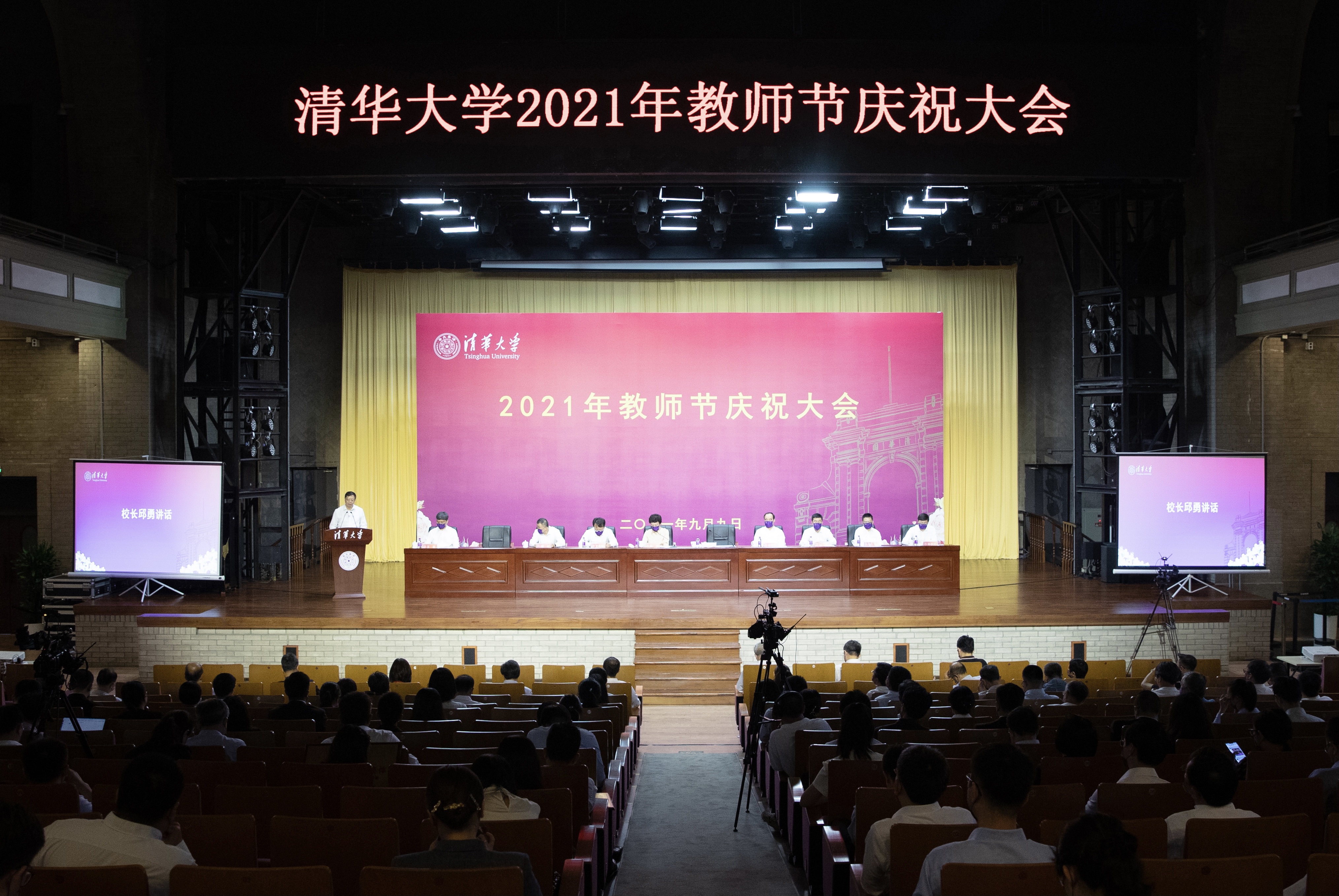 清华新闻网9月12日电(记者 詹萌 摄影 李派 石加东)9月9日下午,清华大学以线上线下相结合的方式举行教师节庆祝大会,隆重表彰在教书育人等各项工作中取得突出成绩的个人和集体。校领导陈旭、邱勇、王希勤、吉俊民、杨斌、过勇、向波涛、彭刚出席会议。