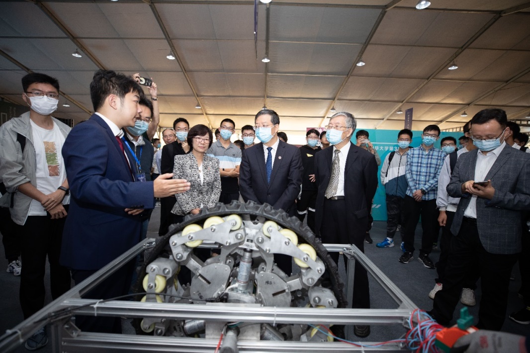 校长邱勇一行参观第38届“挑战杯”学生课外学术科技作品展(李派 摄)
