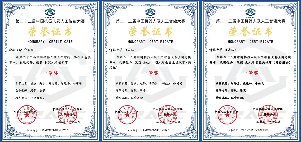 清华大学代表队荣获第23届中国机器人及人工智能大赛全国总决赛三项一等奖
