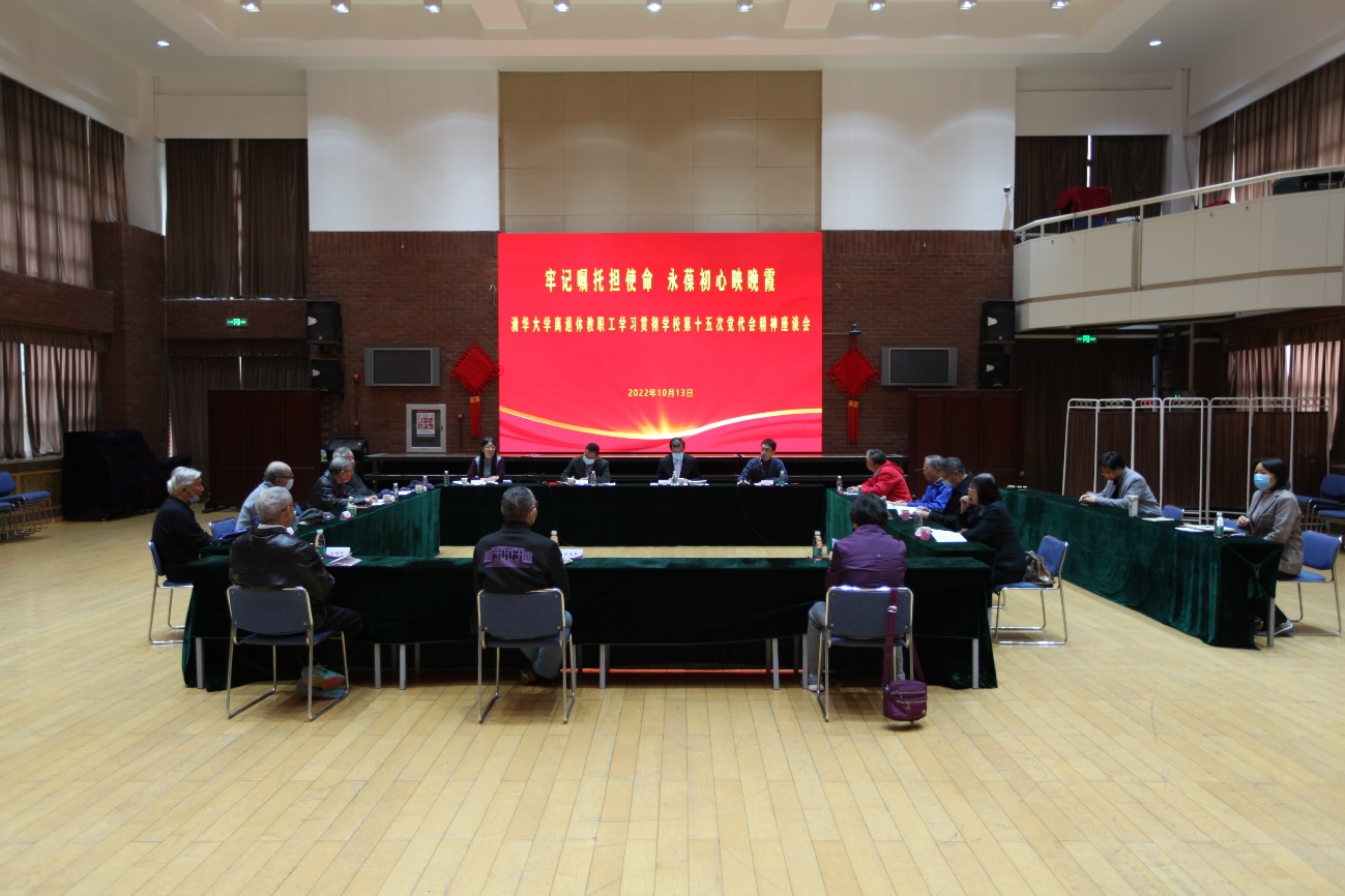 清华新闻网10月17日电 10月13日下午,“牢记嘱托担使命,永葆初心映晚霞”学校离退休教职工学习贯彻清华大学第十五次党员代表大会精神座谈会在熊知行楼老年活动中心多功能厅举行。校党委副书记向波涛,校党委副书记、纪委书记、监察专员赵罡出席座谈会。计算机系离退休教职工第一党支部党员代表、学校第十五次党代会离退休教职工党代表等20余人参加会议。会议由离退休工作部部长曹海翔主持。