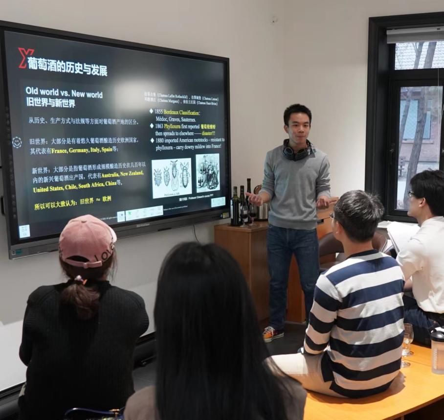 李潇翔作为葡萄酒协会会长给会员讲课