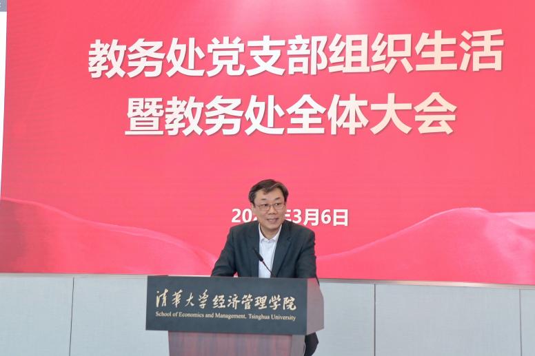 清华新闻网3月11日电 3月6日下午,教务处党支部组织生活暨教务处全体大会在建华楼多功能厅举行,与会人员深入学习全校教职工大会暨全校党员集中培训精神并进行交流讨论。教务处、书院管理中心、本科生招办共60余位党员群众参加会议。