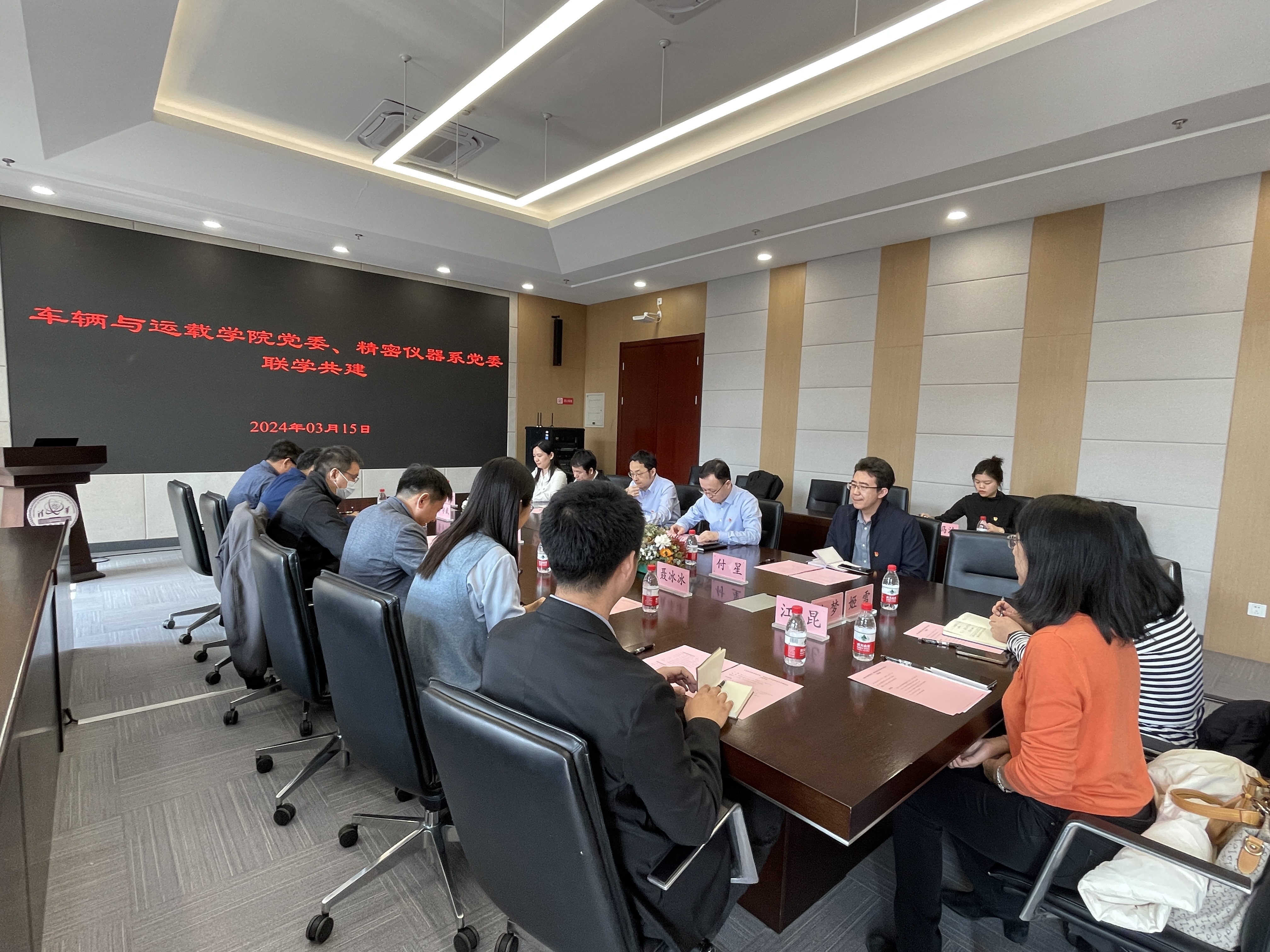 清华新闻网3月18日电 3月15日,车辆学院党委与精仪系党委开展联学共建活动,深入学习贯彻全校教职工大会暨全校党员集中培训会议精神,推进落实《清华大学全面贯彻落实党的二十大精神行动方案》,推动党建工作高质量发展。精仪系党委书记白本锋主持活动,车辆学院党委书记李升波、党委副书记罗禹贡、聂冰冰,精仪系党委副书记吴冠豪,双方教师党支部书记、党办人员等15人参加学习。