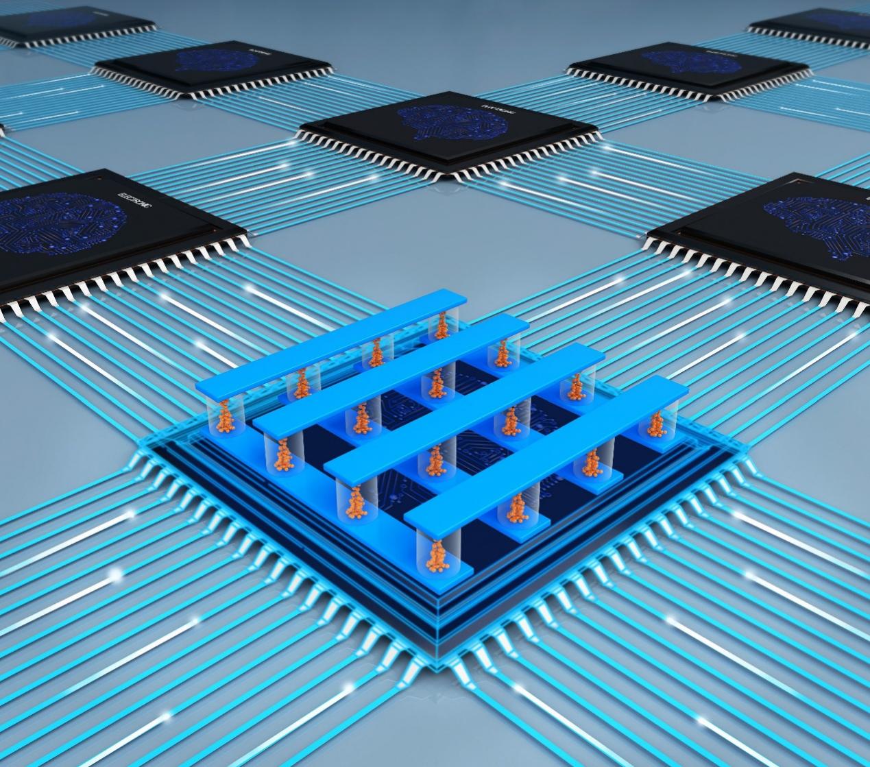 2012年,集成电路学院教授钱鹤、吴华强团队开始研究用忆阻器来做存储,但由于忆阻器的材料器件优化和集成工艺不成熟,团队只能靠自己在实验室里摸索,在一次又一次失败的实验中探索提高器件的一致性和良率。两年后,清华大学与中科院微电子所、北京大学等单位合作,优化忆阻器的器件工艺,制备出高性能忆阻器阵列,成为我国率先实现忆阻器阵列大规模集成的重要基础。
