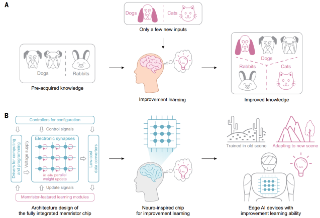 清华大学集成电路学院教授吴华强、副教授高滨基于存算一体计算范式,在支持片上学习的忆阻器存算一体芯片领域取得重要突破,研究成果以“面向边缘学习的全集成类脑忆阻器芯片”为题发表在《科学》(Science)期刊上。该成果近期入选“2023年清华大学最受师生关注的年度亮点成果”,其架构原理的创新对高性能芯片的发展具有重要意义。