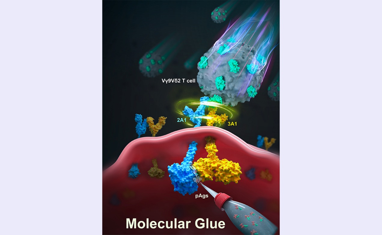 “虽然γδ T细胞受体对肿瘤及病原体的感知异常灵敏,但是分子水平的结合力分析表明,膦抗原与BTN3A1的结合强度远不足以高效激活γδ T细胞。”张永辉介绍。团队的另一位博士生袁琳洁经过漫长的筛选和研究,在2020年发现,BTN3A1存在“免疫伙伴”BTN2A1,它和BTN3A1“长得”非常相似,简直就像一对“双胞胎”。而膦抗原像“分子胶水”一样,促进BTN3A1与BTN2A1在靶细胞内部的紧密结合。
