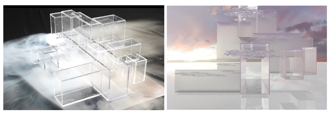 “山荷流光”沉浸式交互空间效果图。(小组成员:王婧怡、王诗溢、史依鹭、宁昀潼、张晴朗)