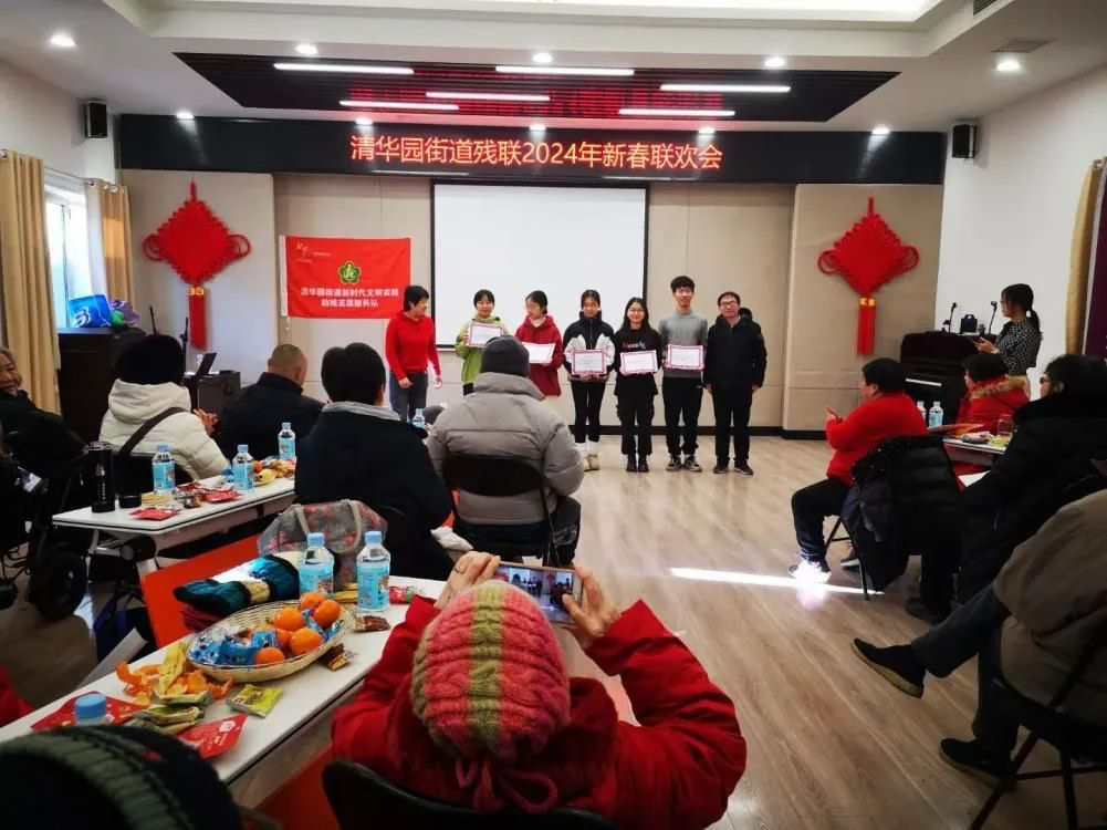 2024年新年之际,“瑶光计划”项目组受邀参加清华园街道残联举办的新年联欢会,项目组成员与志愿者一起承担联欢会的组织工作,并邀请了清华大学学生艺术团军乐队和民乐队的成员带来精彩的演出。