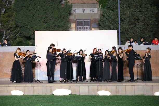 清华新闻网5月14日电 4月27日晚,为了庆祝清华大学113周年校庆,由校研团委承办、校党委统战部支持的“呦呦鹿鸣,六合同风”民族音乐节在理学院下沉广场举行。本次活动邀请中央民族大学、中国音乐学院、校民乐队、第十期“石榴籽计划”学员参与节目表演,涵盖器乐演奏、重奏、独唱、呼麦、舞蹈、歌乐合鸣等演出形式,吸引1000余名师生、校友参与其中。校党委统战部副部长南彬、中央民族大学音乐学院党委书记白艳秋等亲临现场,共同感受不同民族文化交流融合、相映生辉的精彩表演。