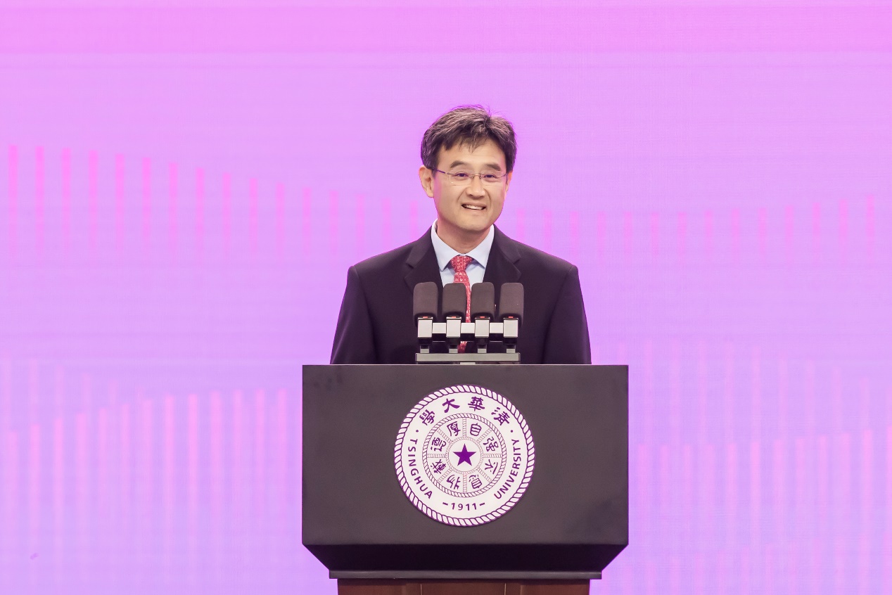 清华大学1986级汽车工程系校友、深圳光峰科技股份有限公司创始人兼董事长李屹作为校友代表,回顾了自己在清华园的学习和生活以及光峰科技的发展历程,鼓励大家用自身所学推动社会的发展进步,为人类创造更美好的生活,祝愿深圳国际研究生院走出越来越多的优秀人才,为国家的发展贡献清华力量。