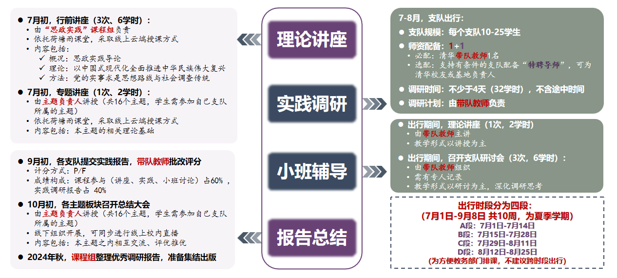 从1997年为“中国特色社会主义建设概论”课程增加课前寒假学生调研环节,到专门设置“毛泽东思想和中国特色社会主义理论体系概论(2)”课程、进行一系列基于理论的实践活动,再到各院系在校团委的组织和支持下积极开展社会实践,清华大学“思政+实践”的教学模式在全校的共同探索下日益完善。