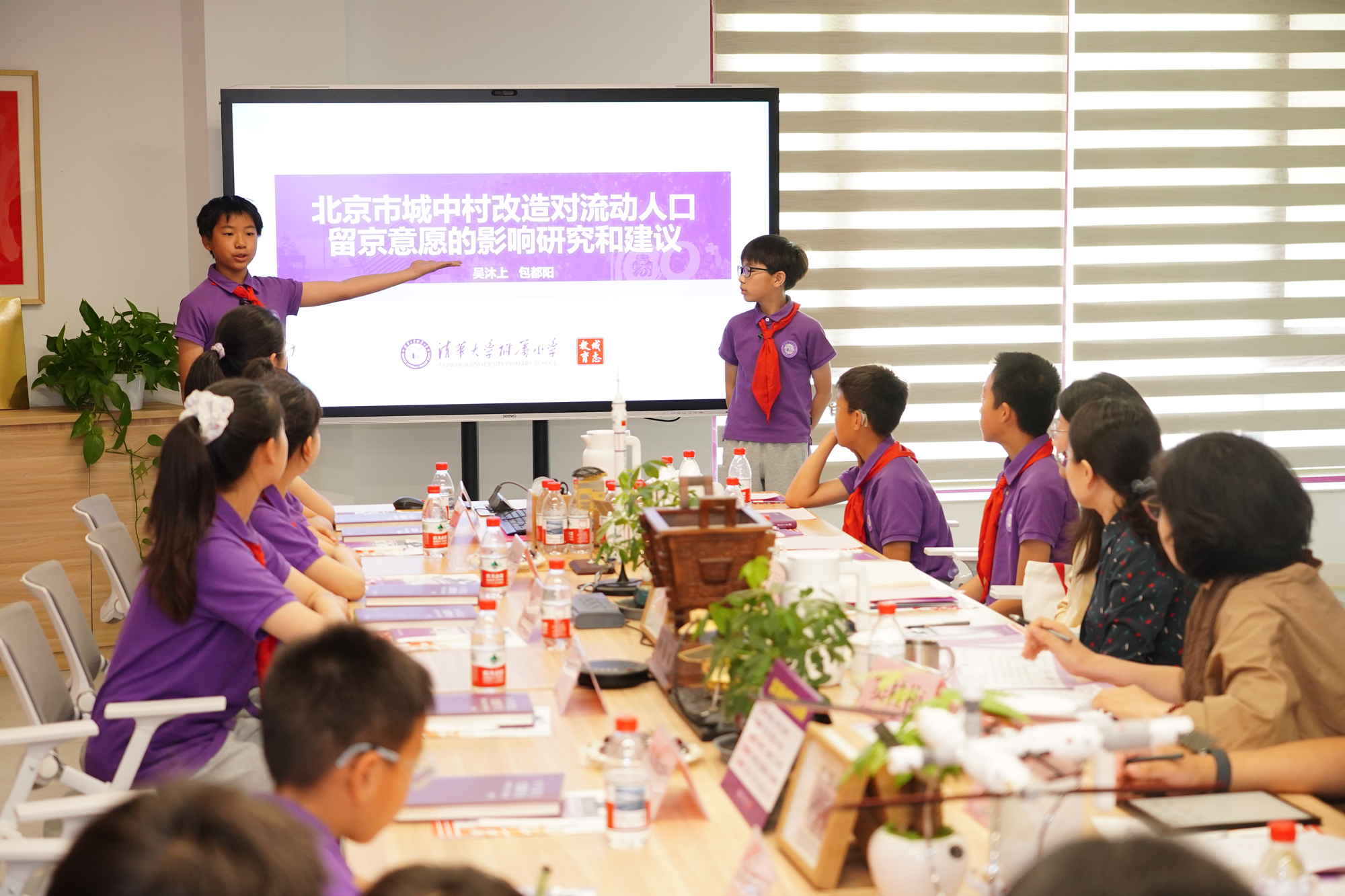附小学生和北京市政协委员窦桂梅一起关注社会民生。