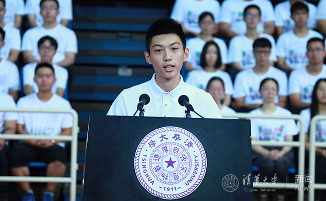 8月23日上午9点,清华大学2018级本科生新生开学典礼在综合体育馆举行。本科生代表朱培豪在清华大学2018级本科生开学典礼上的发言。