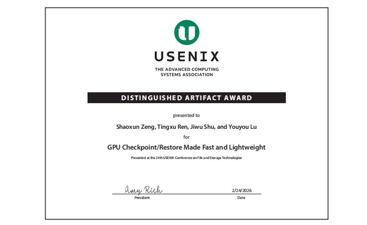 2月24日至26日,第24届USENIX文件与存储技术会议在美国圣克拉拉举行。清华大学计算机系存储实验室研究论文“GPU检查点保存和恢复的快速和轻量级方案”获得杰出技术贡献奖。