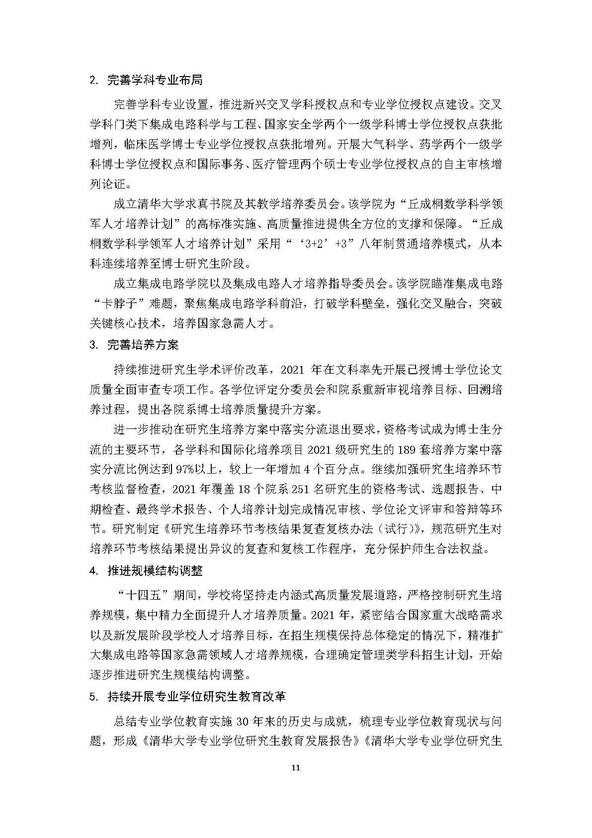 清华大学周期性合格评估参评学位授权点建设年度报告(2021年度)
