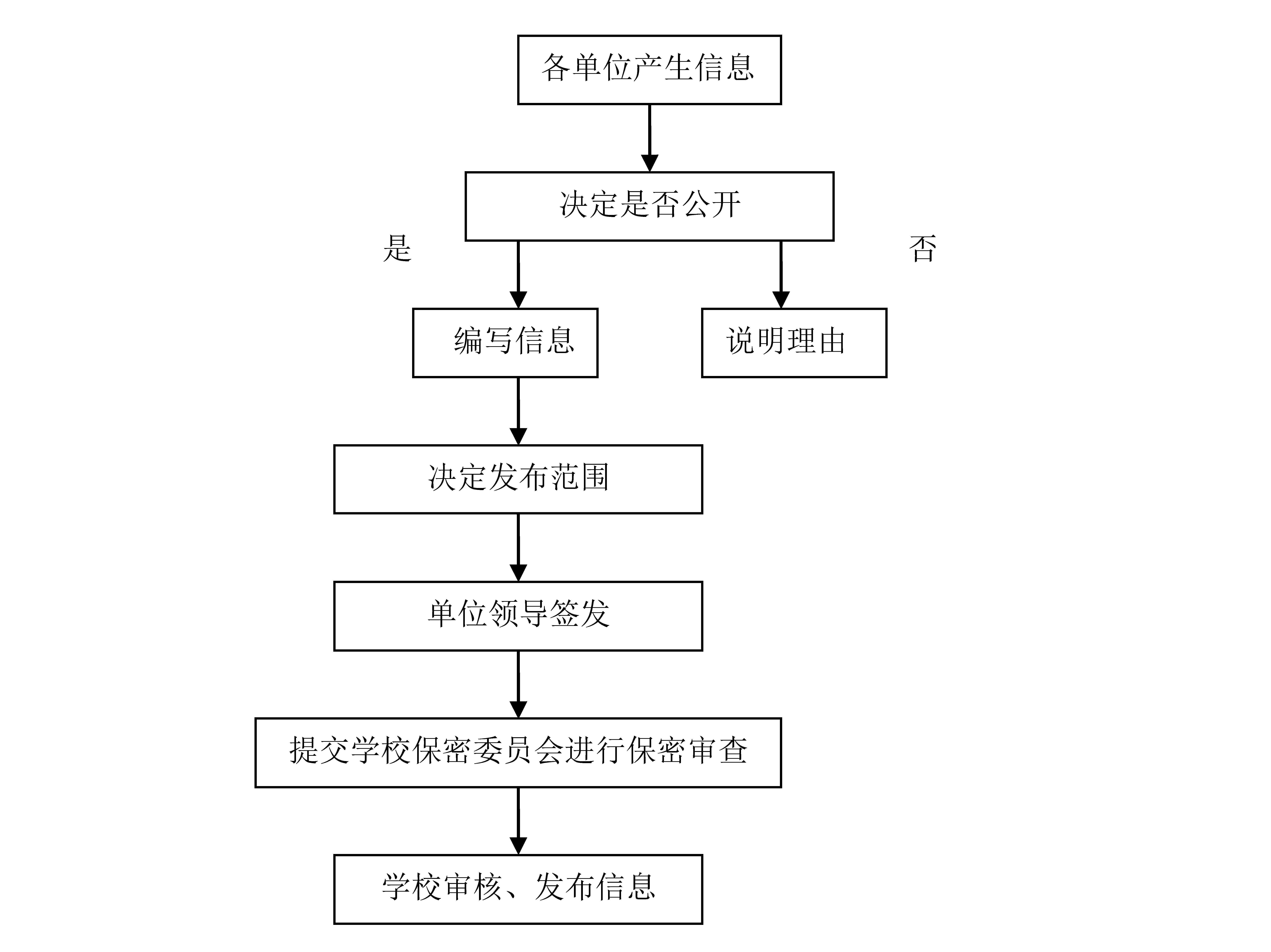 学校各单位完成信息制作或者获取信息后,应当及时明确该信息是否公开。确定公开的,应当明确公开的受众;确定不予公开的,应当说明理由;难以确定是否公开的,应当及时报请学校审定。